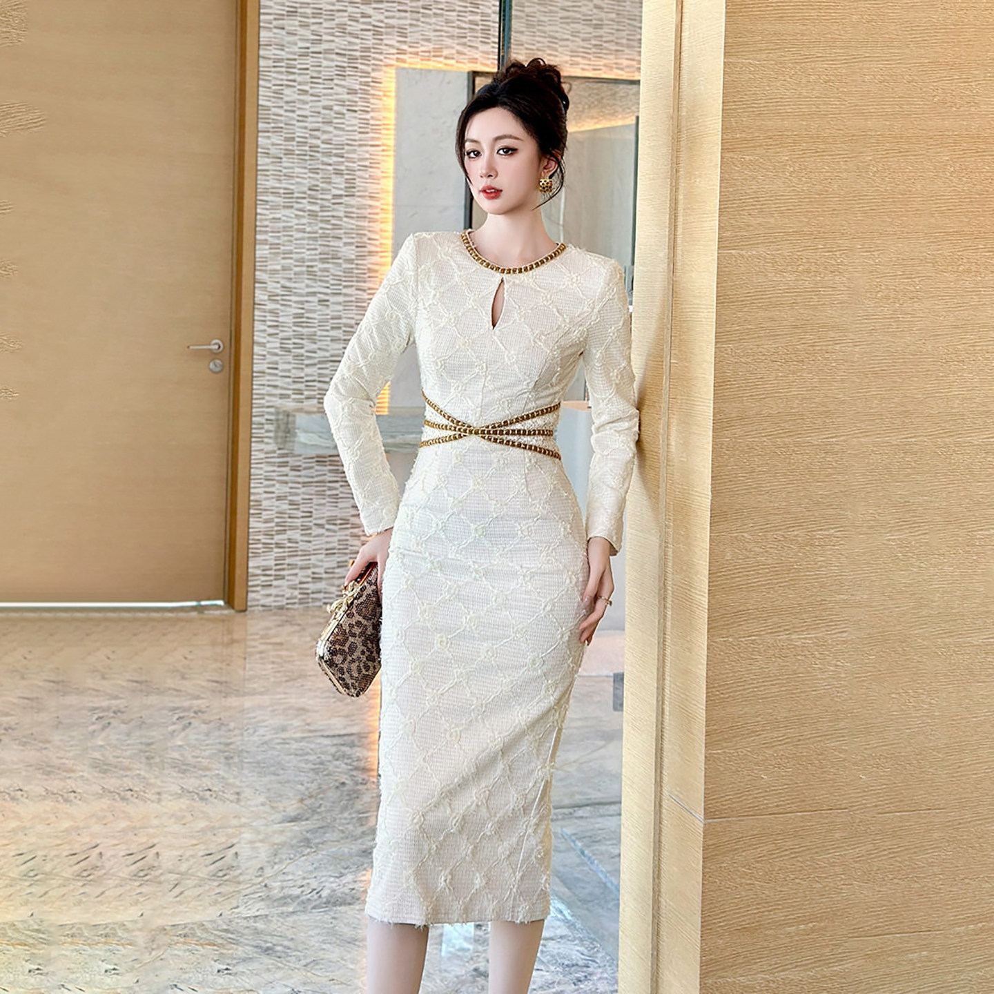 2025秋冬新款气质圆领修身显瘦蕾丝连衣裙包臀裙时尚女装秋冬裙子