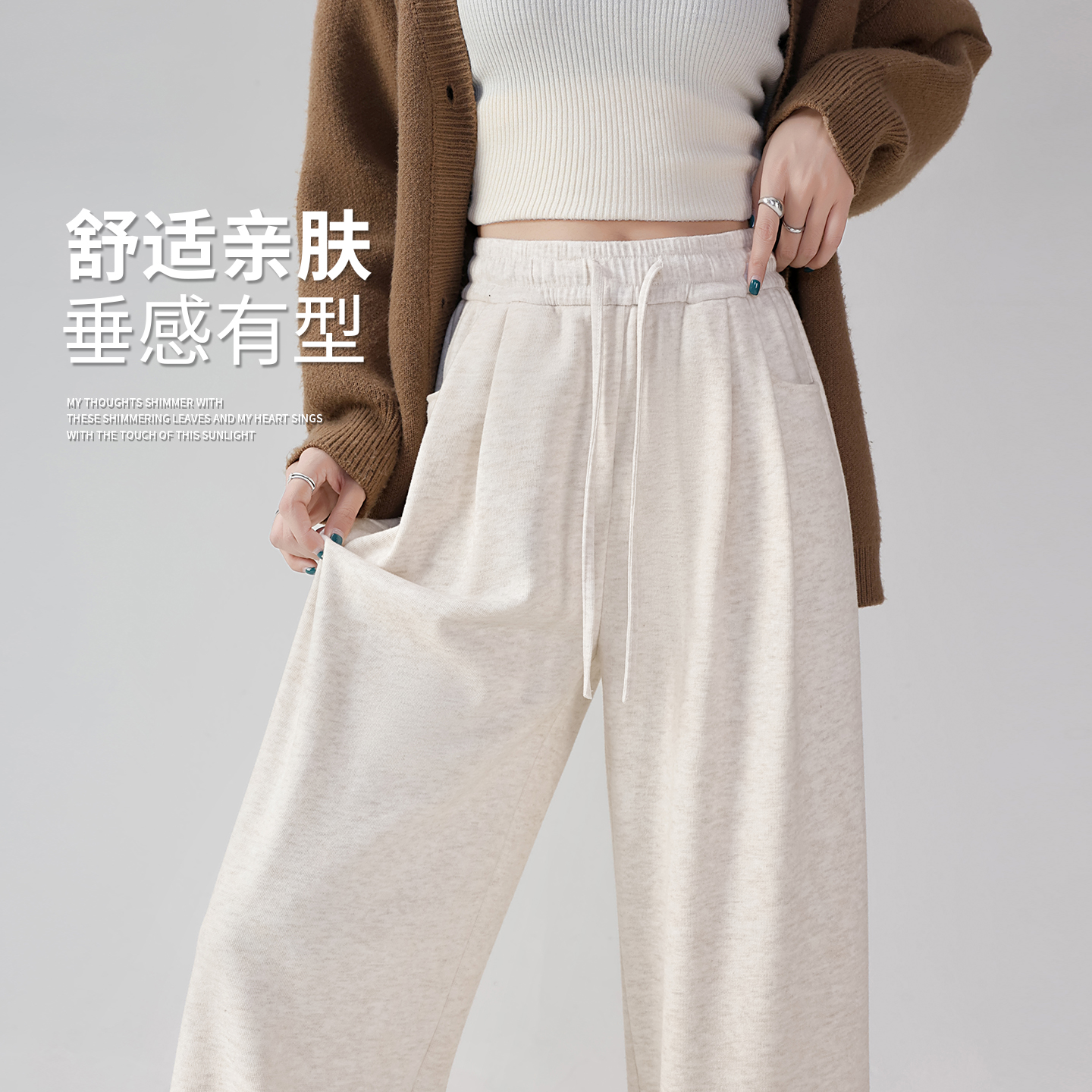 米白珠地棉窄版阔腿裤女2025秋冬小个子九分显瘦针织休闲直筒长裤