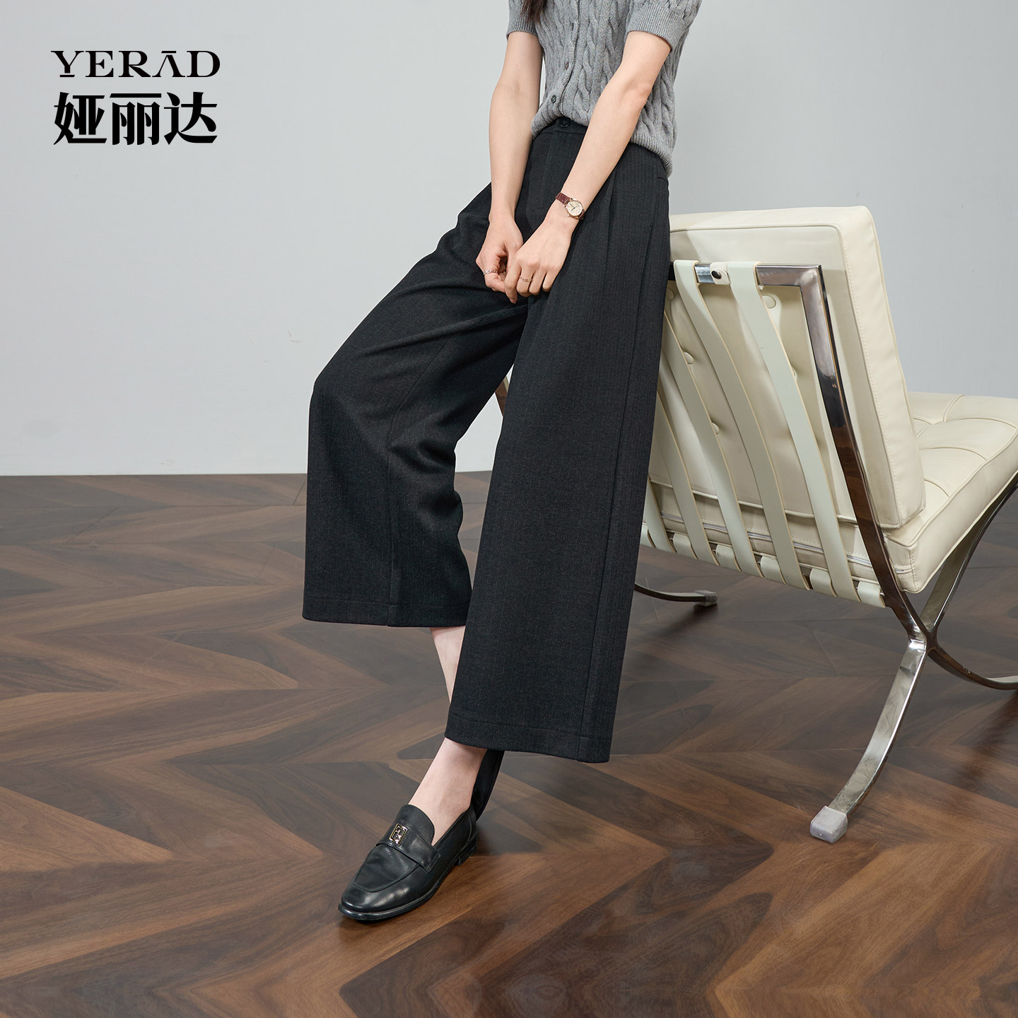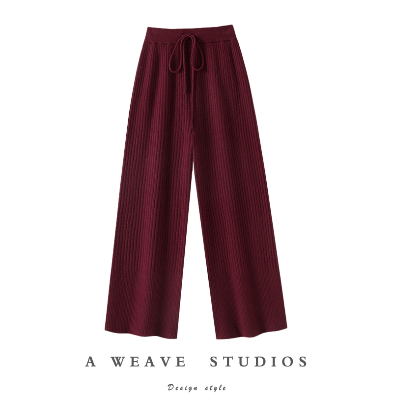 好裤型久穿亦喜!高定精纺100%纯山羊绒裤子女外穿针织九分阔腿裤
