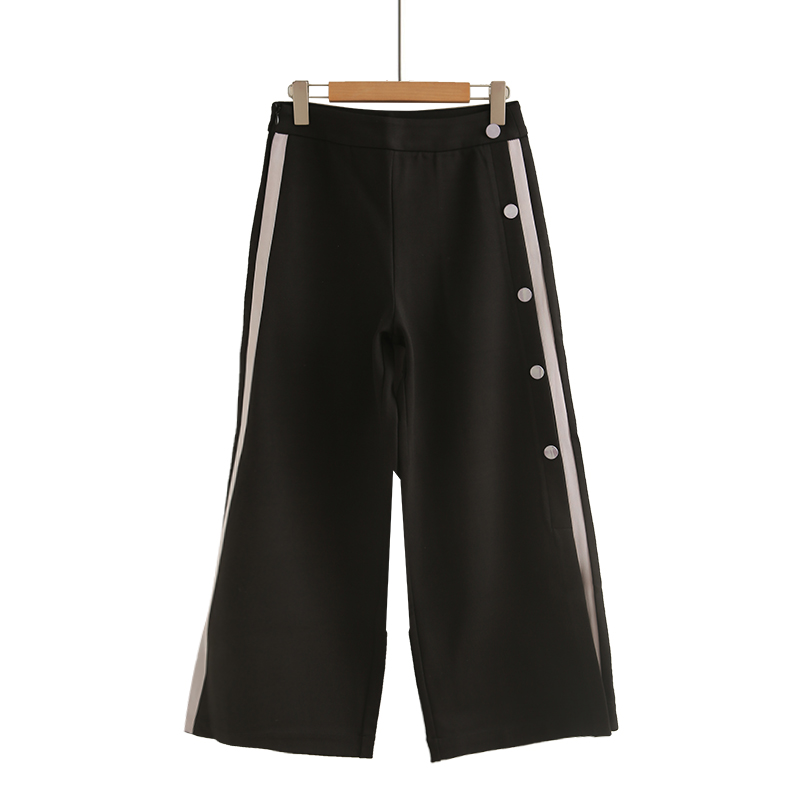 秋冬季新款高腰双边拼色针织阔腿裤修身女加厚款撞色九分裤单边扣