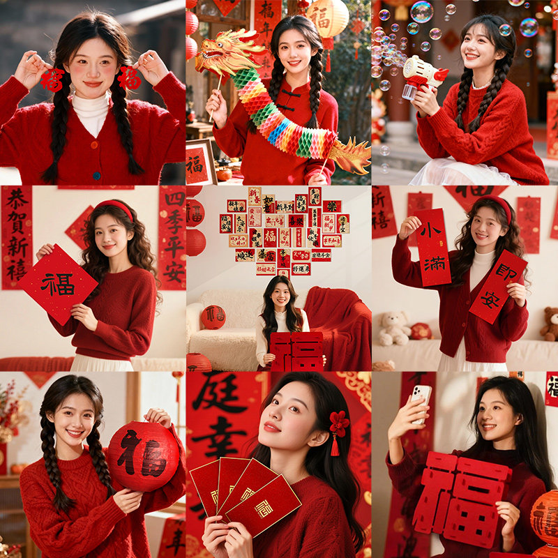 新年写真拍摄道具春节喜庆主题拍摄古装拍照过年装饰道具国潮灯笼