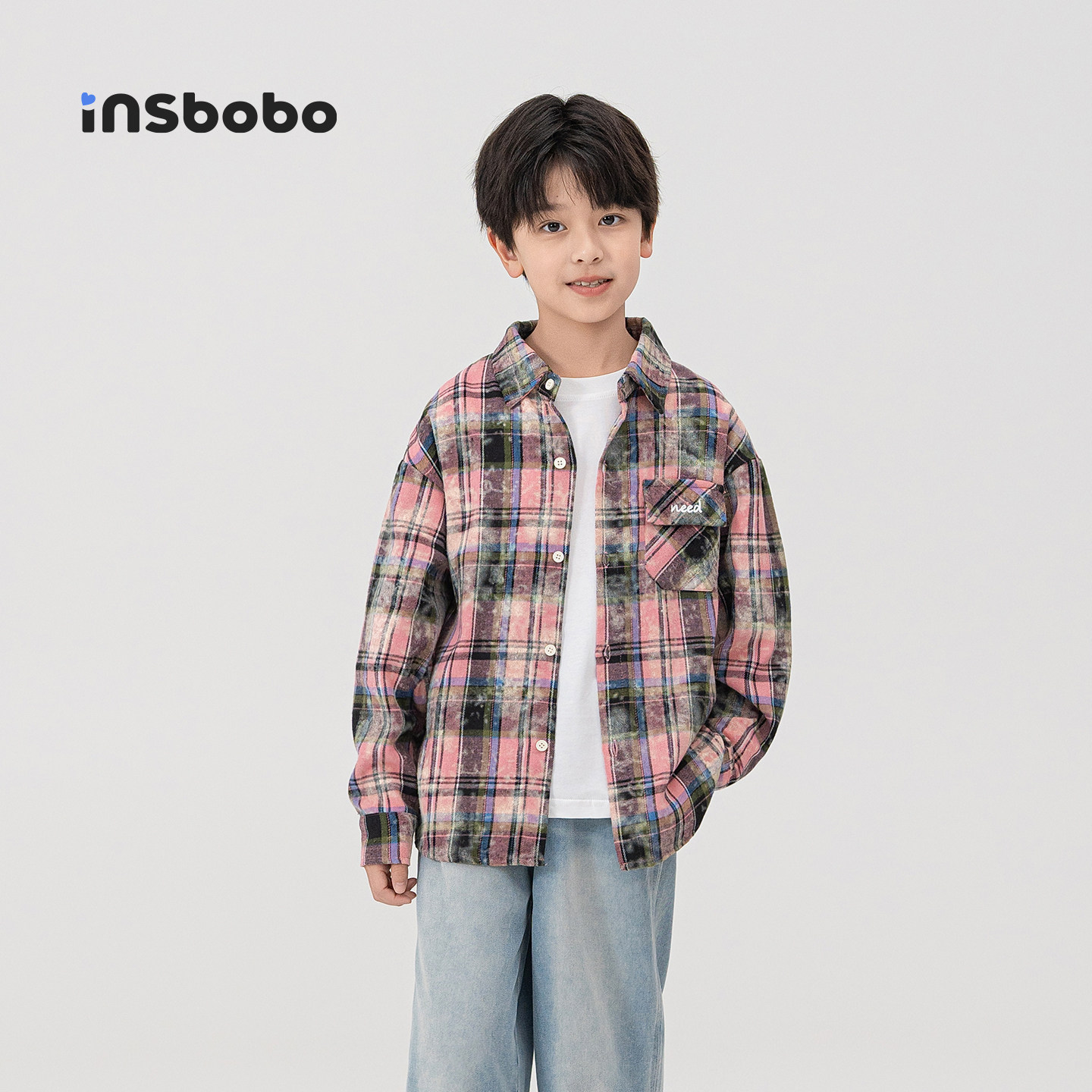 INSbobo童装儿童衬衫2026新款男童衬衣女孩长袖格子衫男孩上衣春