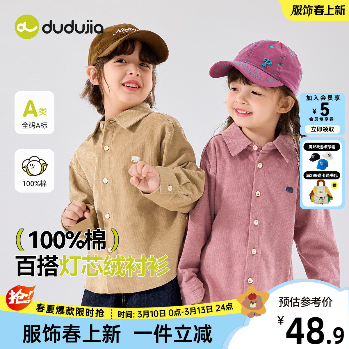 【100%棉】嘟嘟家儿童纯棉衬衫春季新款宝宝衣服男童衬衣女童上衣