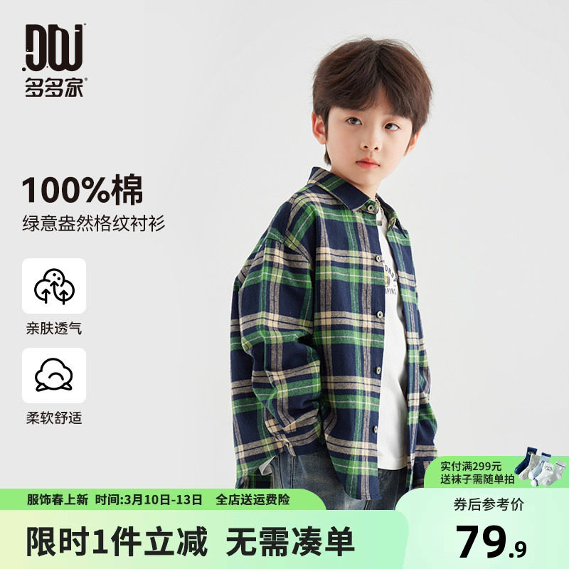 多多家男童衬衫纯棉儿童衬衣春秋季2026新款男孩外穿格纹外套上衣