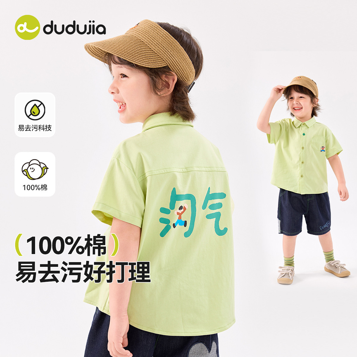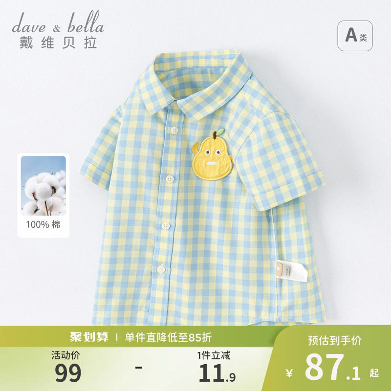 【100%全棉易去污】嘟嘟家儿童纯棉短袖衬衫夏季宝宝衣服男童衬衣