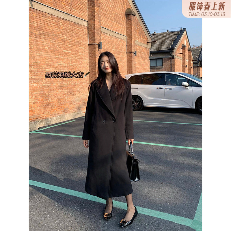 【郭九九呢】90白鸭绒经典加厚西装羽绒大衣女显瘦气质长款外套冬