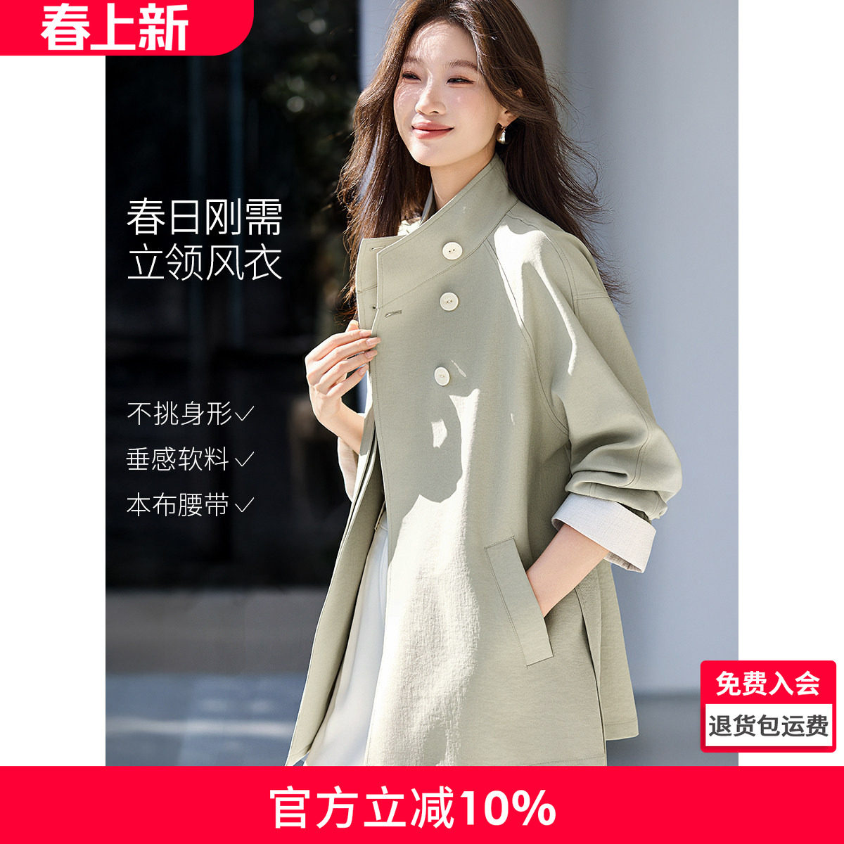 【加购!13号N°28专场】立领风衣女春季宽松系带收腰中长款外套