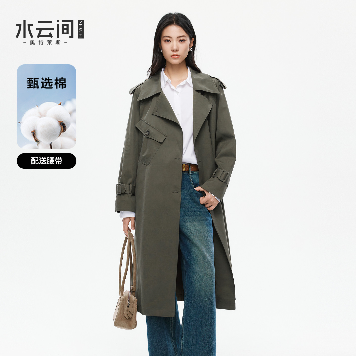 Mogas时髦Chic 重磅莱赛尔奢牌质感Row风系带风衣中长款外套女春