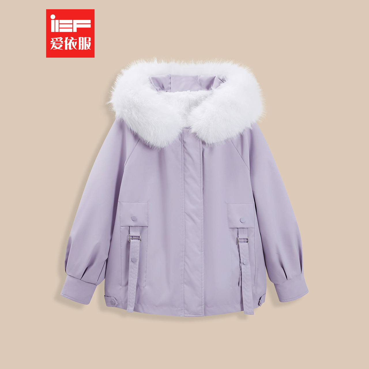 IEF/爱依服2024冬季新款韩版休闲工装风加绒保暖百搭中长款外套