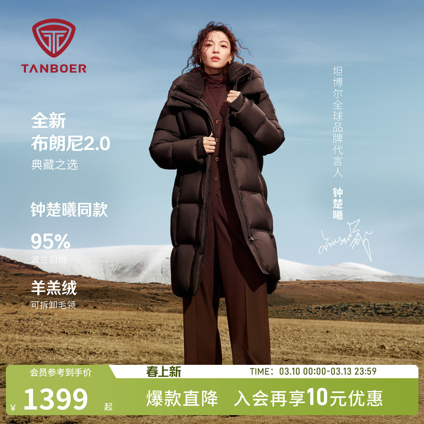 【钟楚曦明星同款】坦博尔25冬季新款羽绒服女装加厚保暖长款外套