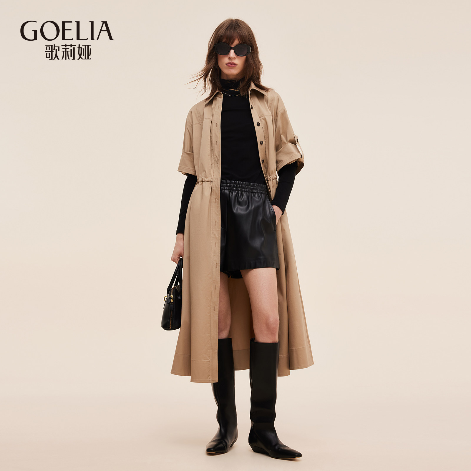 歌莉娅风衣女25新款秋季高级感穿搭抽绳收腰长款外套1E8J6E170