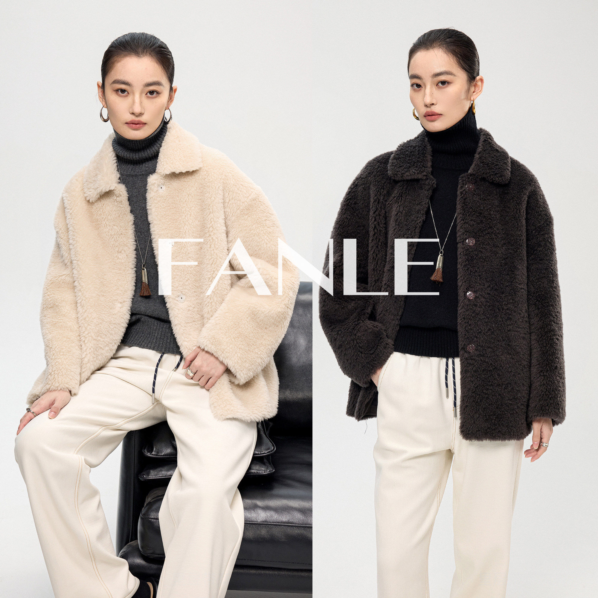 FANLE STUDIOS冬季加密柔软短羊毛显瘦保暖翻领皮草中长款外套女