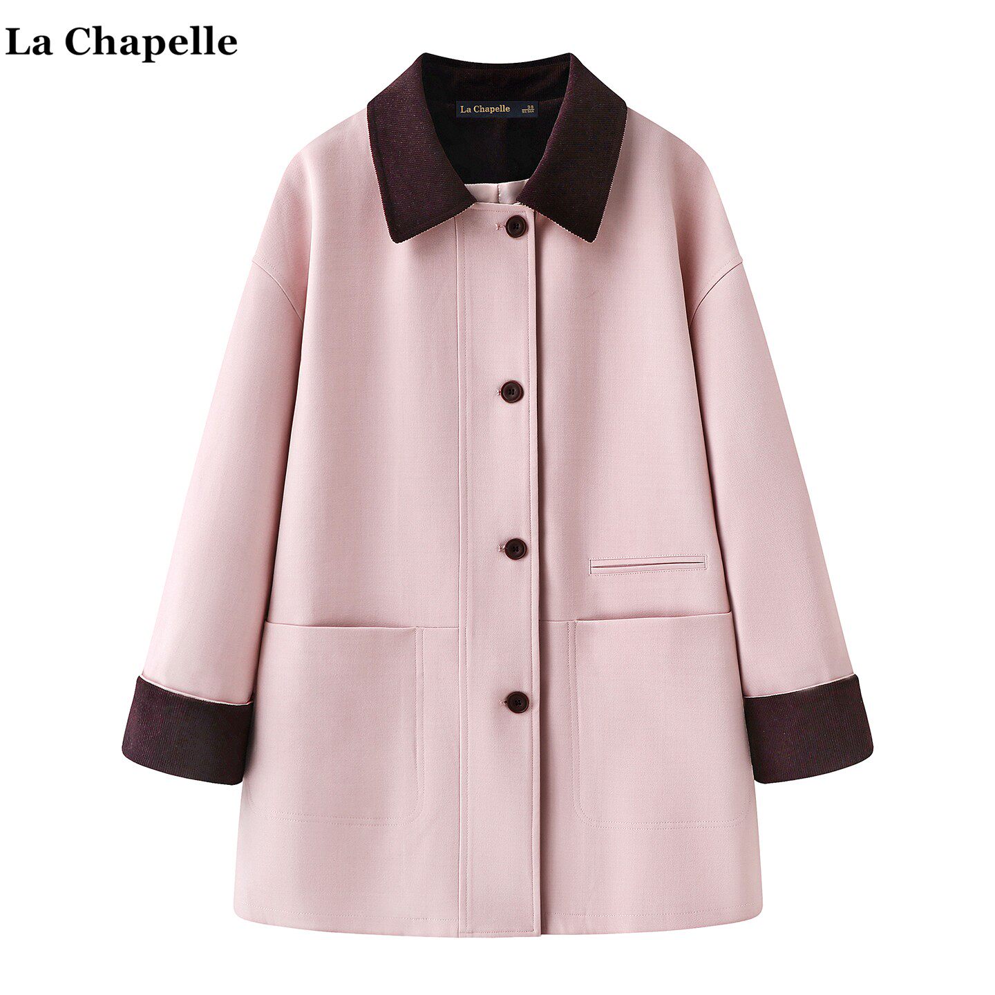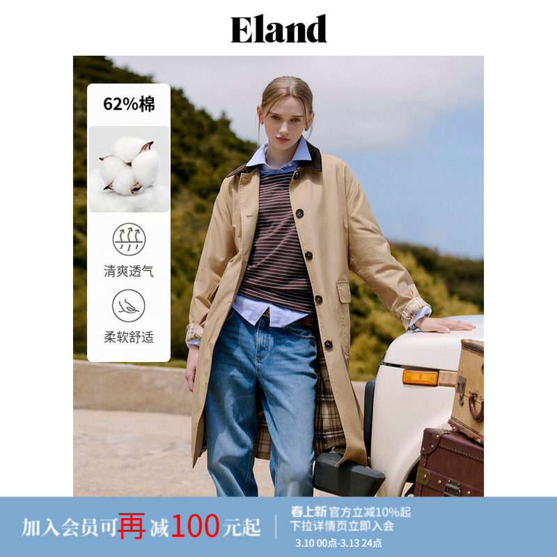 拉夏贝尔/La Chapelle巴恩风撞色撞色翻领风衣女春秋季中长款外套