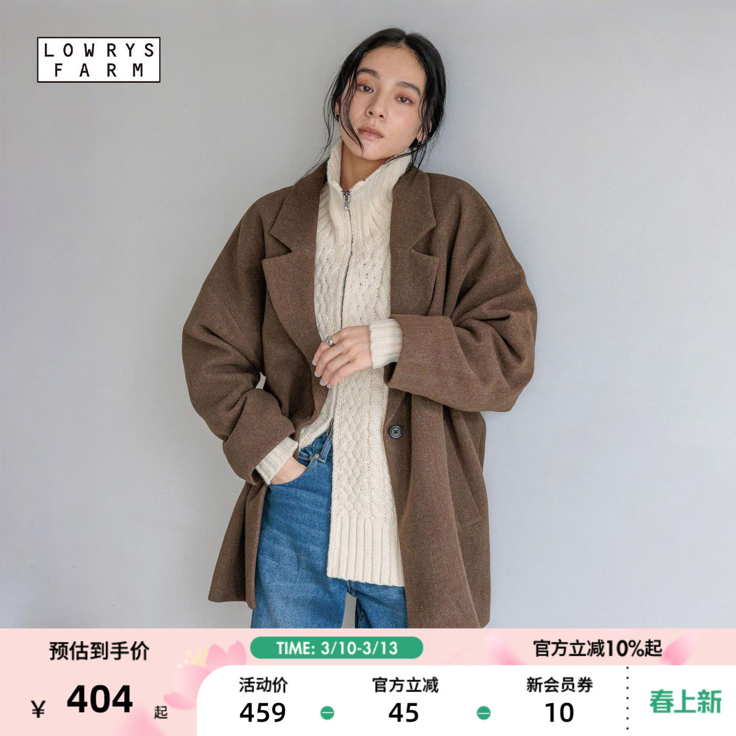LOWRYS FARM大衣女2025冬季新款一粒扣翻领休闲中长款外套494124