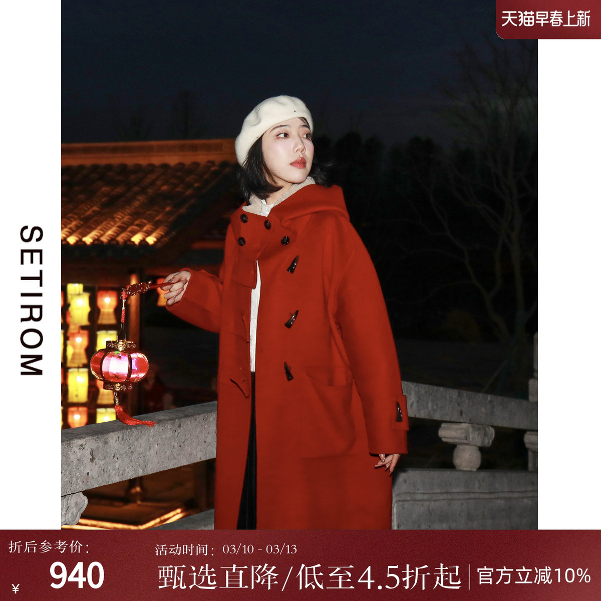 西町村屋双面呢女秋冬新款学院百搭复古红羊毛长款外套AD8209008