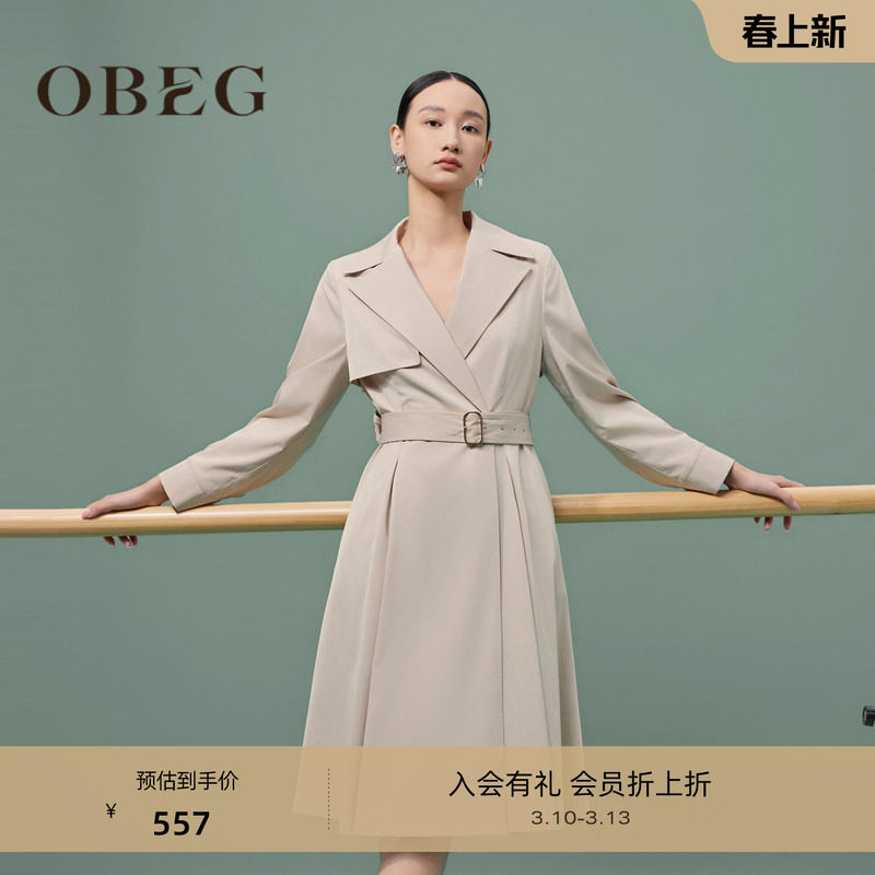 OBEG欧碧倩韩系优雅收腰风衣春装简约中长款外套50481532