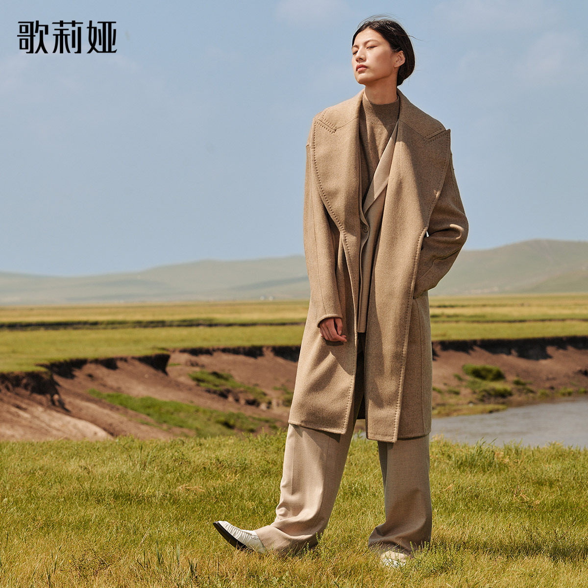 水云间知识分子风大翻领风衣女简约长款外套高智优雅知性2026新款