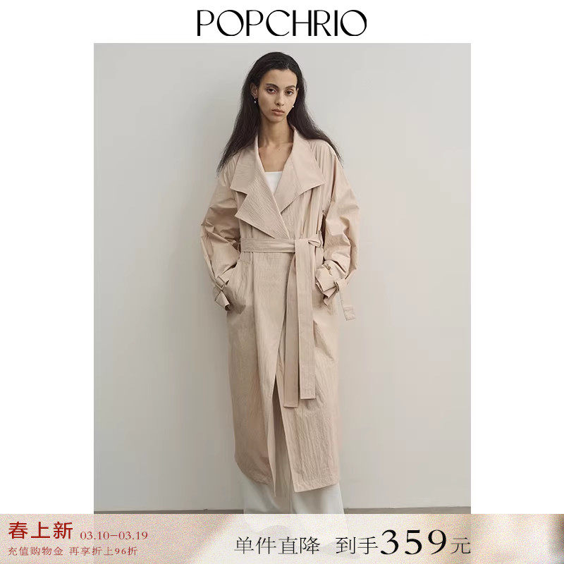【到手359元】微皱肌理纸感棉廓形风衣百搭宽松中长款外套女春秋