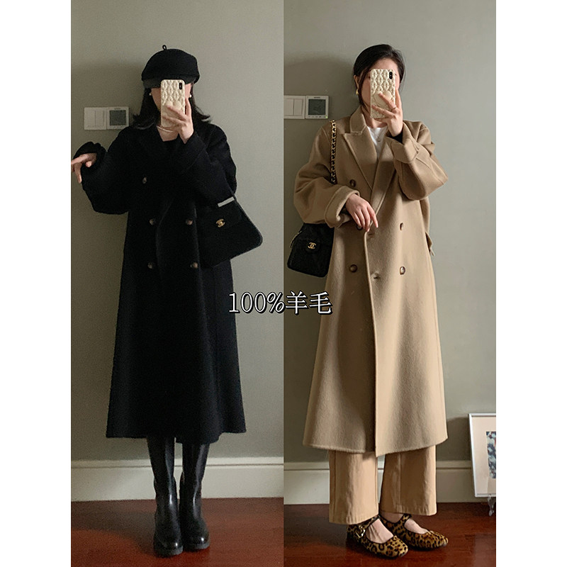 沦陷于气质!双排扣加厚100%纯羊绒开衫女中长款外套毛衣秋冬季