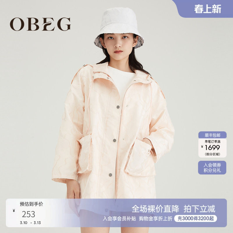 OBEG欧碧倩年时尚婴儿粉提花风衣女中长款外套10421119
