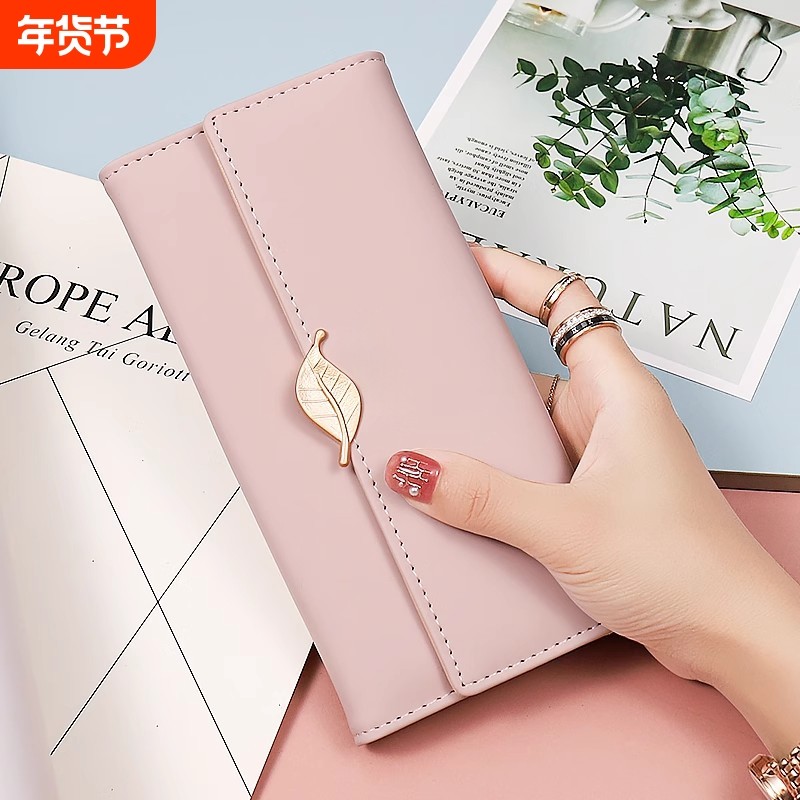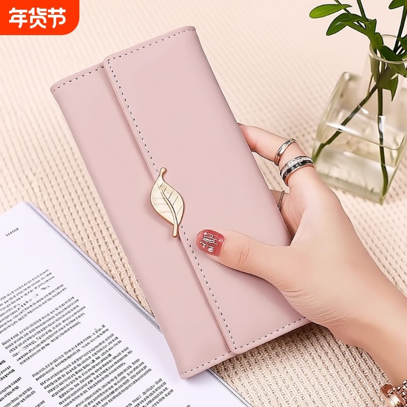 钱包女士2025新款爆款大容量女士长款钱包小清新叶子卡包手拿包女