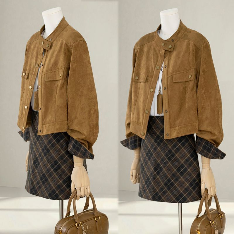 鹿皮绒短款外套女秋冬新款外搭开衫工装风设计感美拉德夹克上衣潮