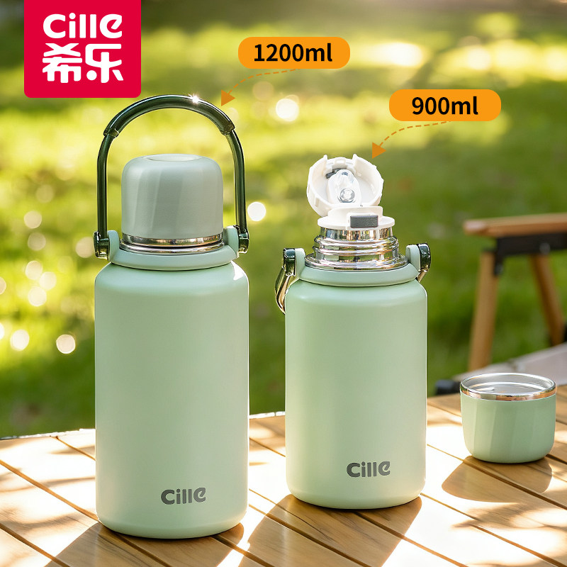 希乐保温杯男款大号大容量吸管杯女生高颜值不锈钢水杯壶外出携带