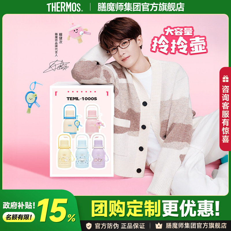 膳魔师便携水壶高颜值女生316L不锈钢水杯大容量保温杯TEML-1000S