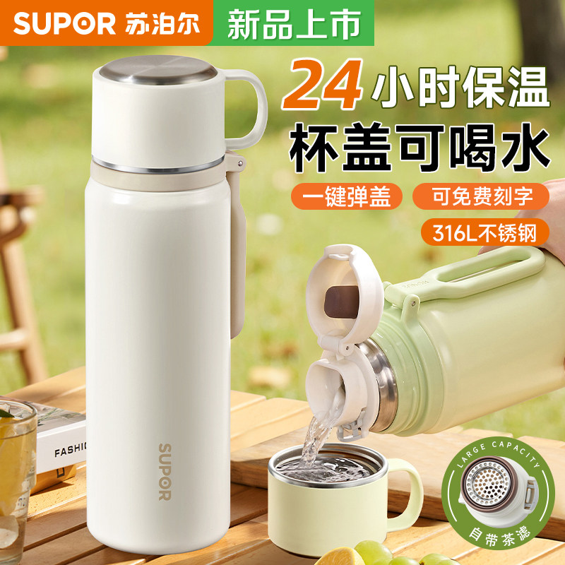 苏泊尔保温杯女男学生ins简约便携小大容量真空316L不锈钢水杯子