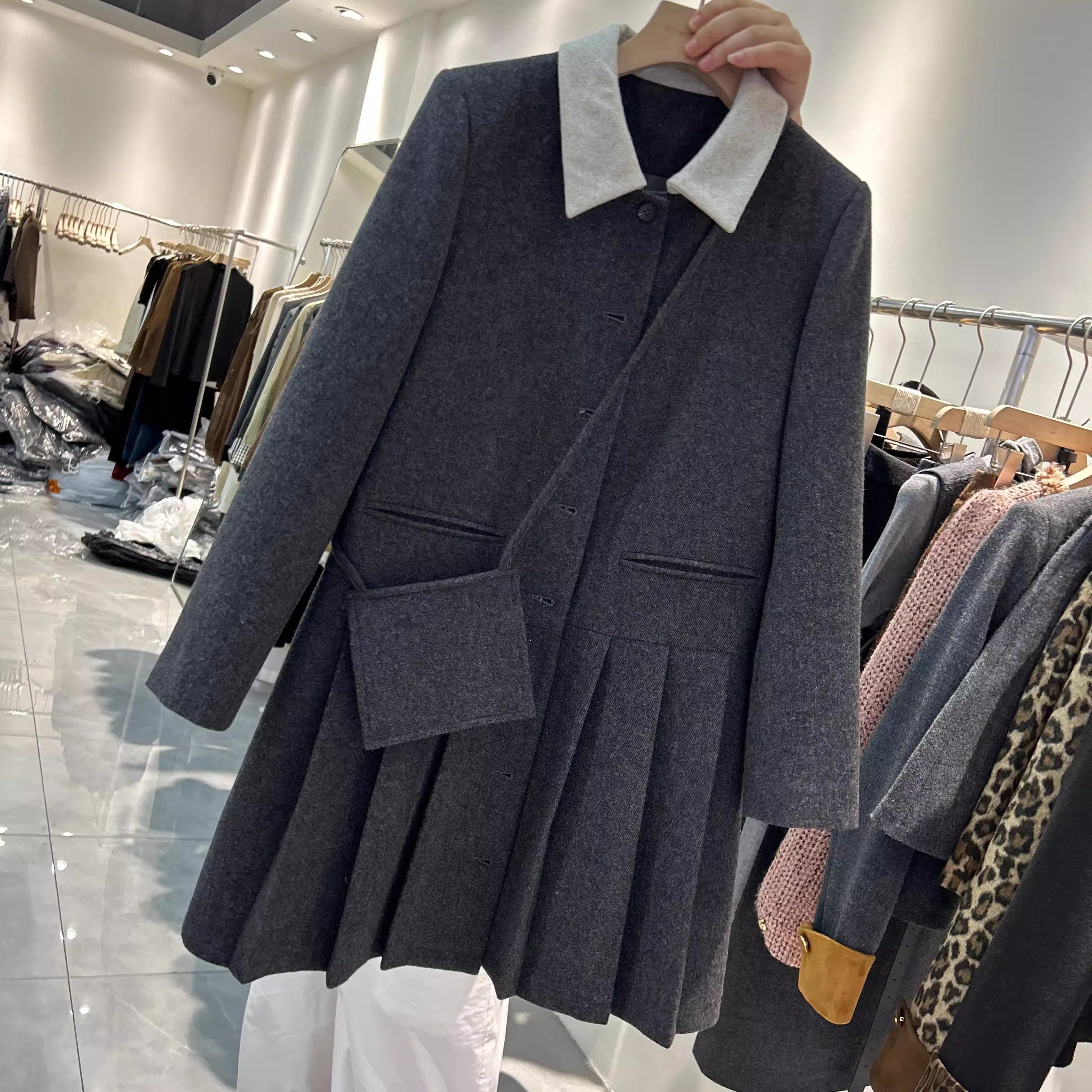 加厚毛呢西装领外套裙女2025秋冬休闲韩版学院风显瘦中长款连衣裙