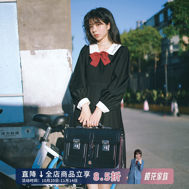 樱花家族jk制服【甜酒舞会】复古学院风连衣裙中长款百褶裙长袖女