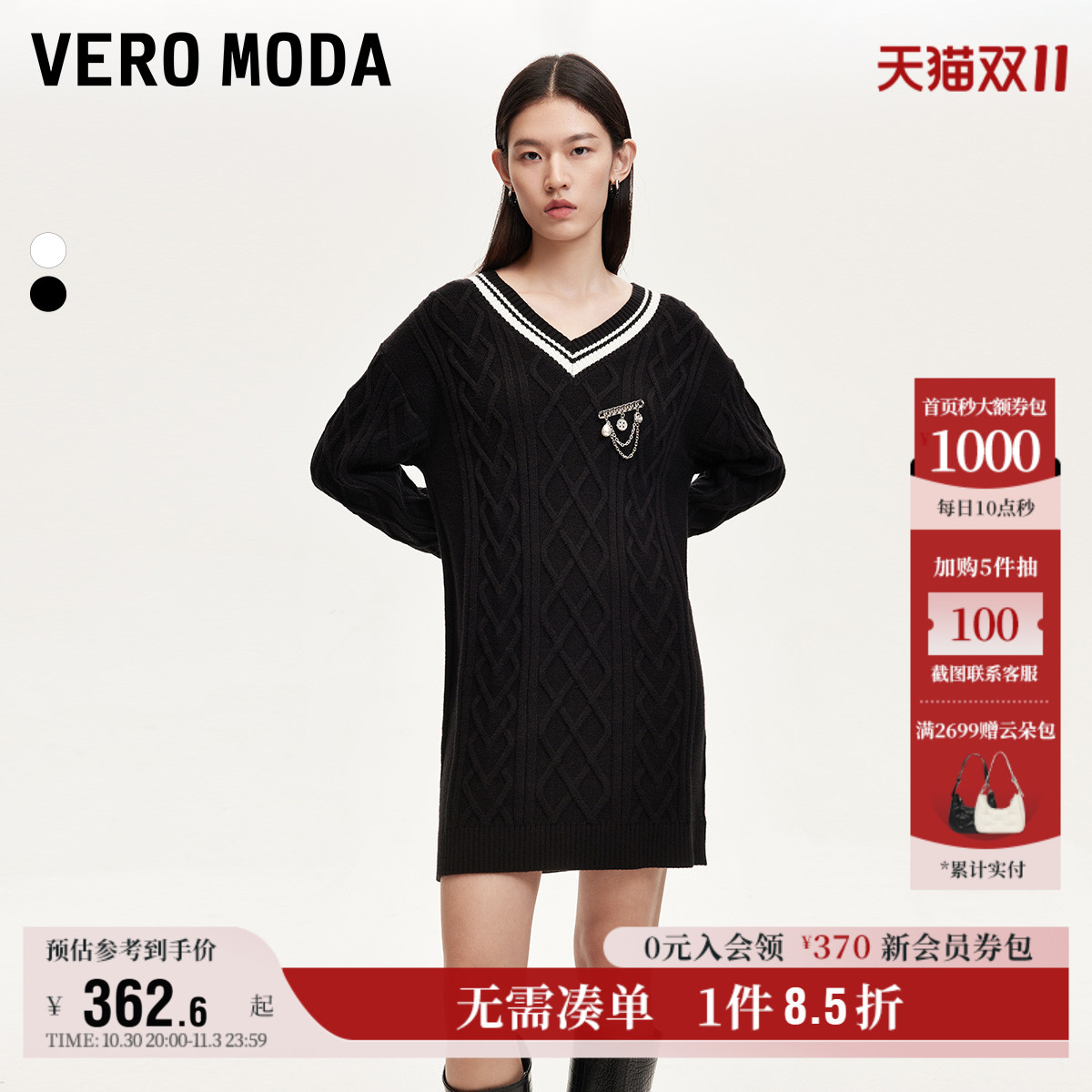 Vero Moda奥莱针织连衣裙秋冬新款V领中长裙学院风复古宽松流行
