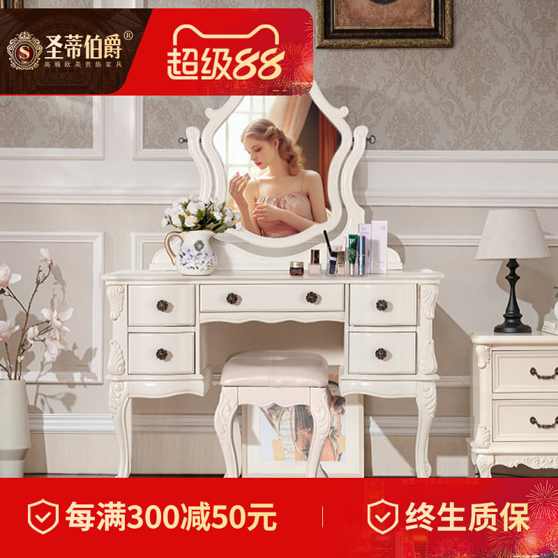 奢华美式实木梳妆台复古欧式卧室家具组合小户型白色红橡木化妆台