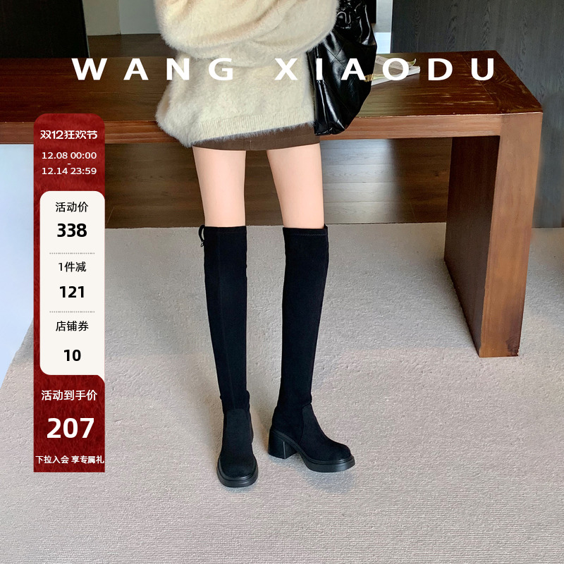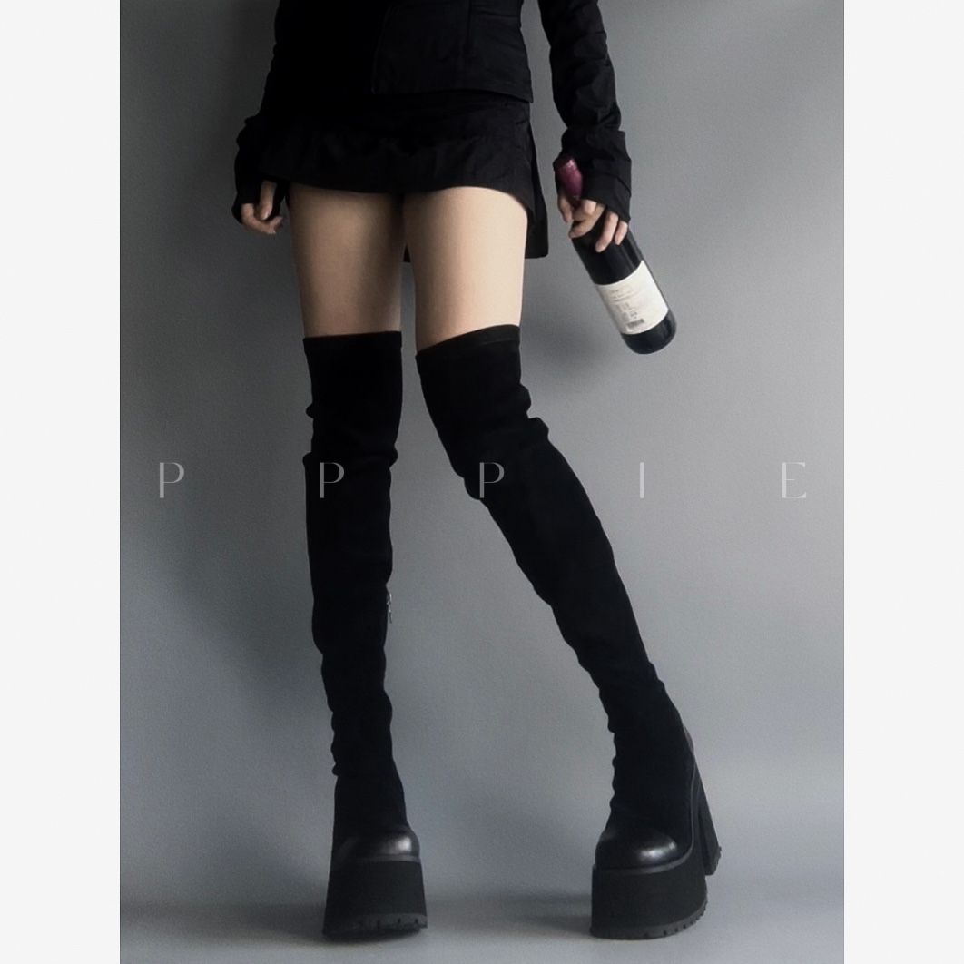 【王小毒】过膝游戏●大长腿7.5cm~厚底显瘦瘦靴女粗跟长筒弹力靴