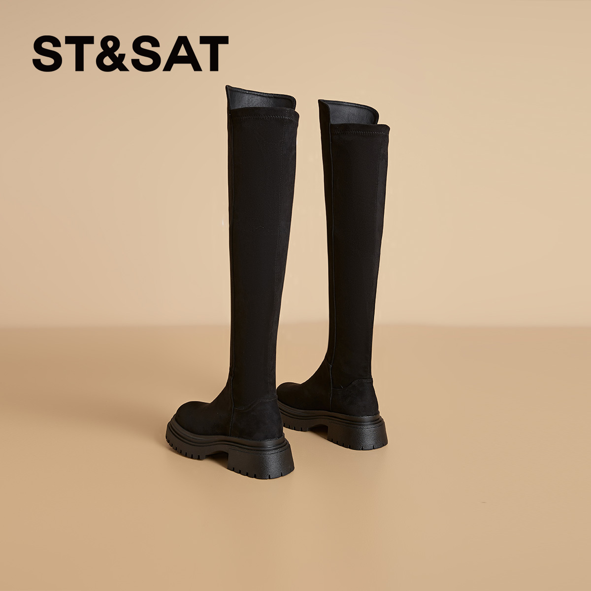 星期六法式弹力靴长靴女靴子2025秋冬新款厚底过膝靴长筒靴高筒靴