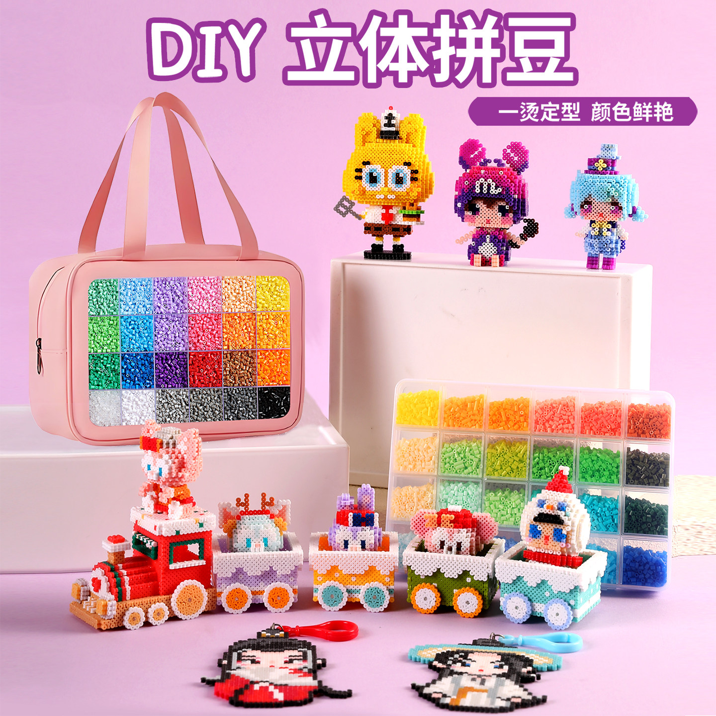 精品拼豆女孩手工diy材料包套装融合豆豆玩具全套工具熨斗补充包