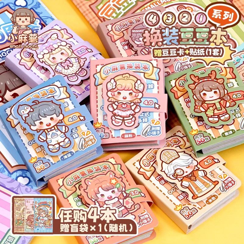小麻薯换装豆豆本迷你贴纸书女孩儿童安静书装饰小图案可爱卡通换装贴画本免裁剪自粘高颜值手工diy玩具手帐