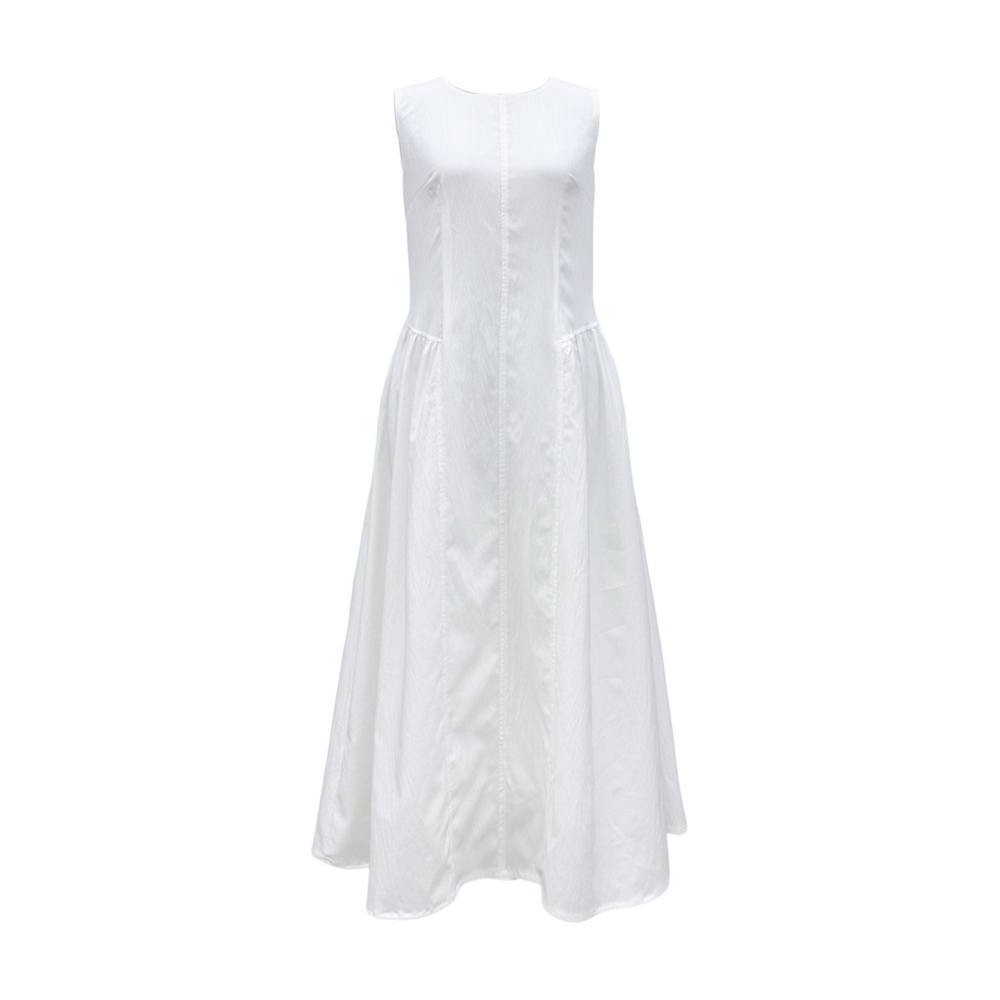 夏安若法式无袖背心白色连衣裙夏女2025新款感褶皱收腰长款小白
