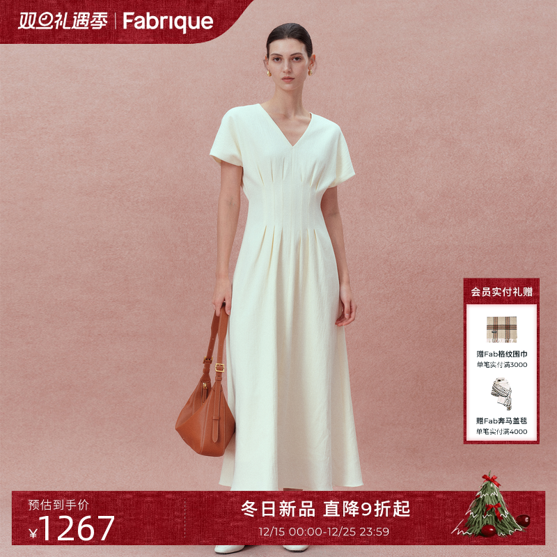 Fabrique轻薄泡芙感棉微弹白色连衣裙夏装2025年秋季新品长裙子女