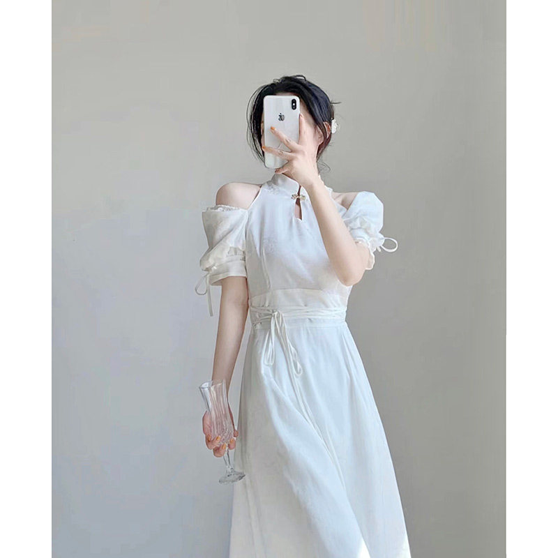 新中式白色连衣裙夏季新款收腰气质法式高级小众设计改良旗袍裙子
