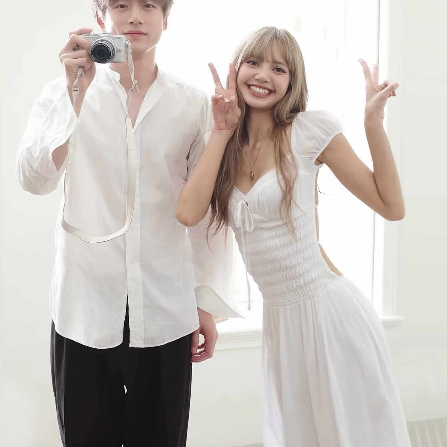 Lisa同款V领系带露背高腰长裙海岛旅游度假风大裙摆白色连衣裙夏