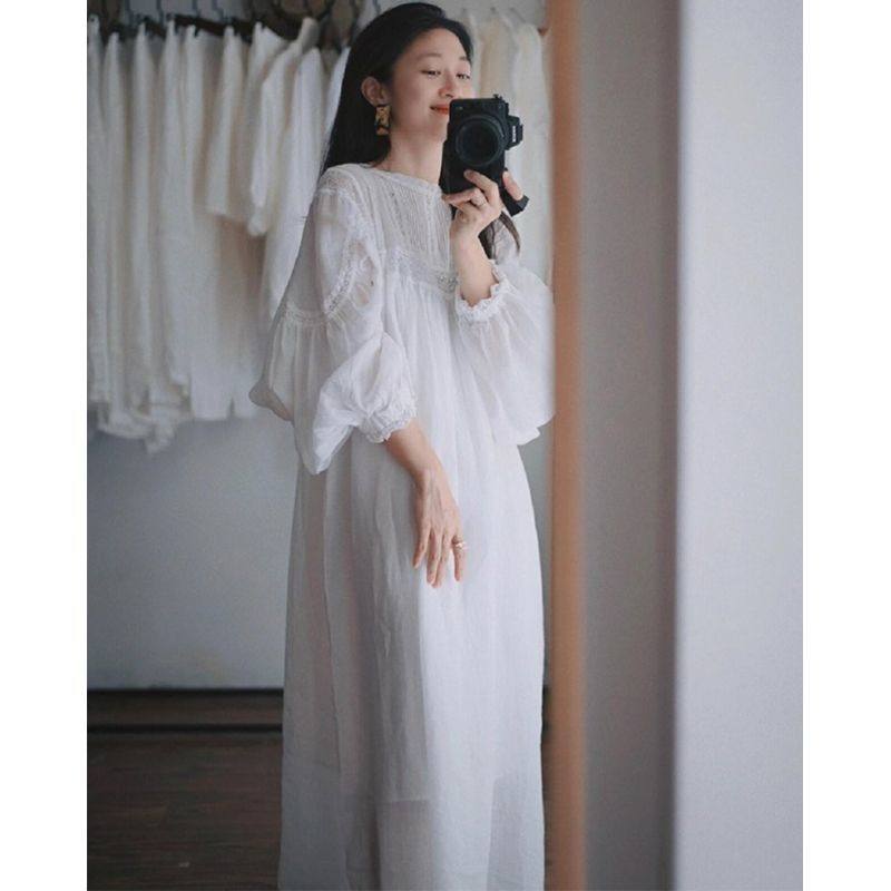 【199专区】复古白色连衣裙夏季女轻国风刺绣长裙别致漂亮裙子