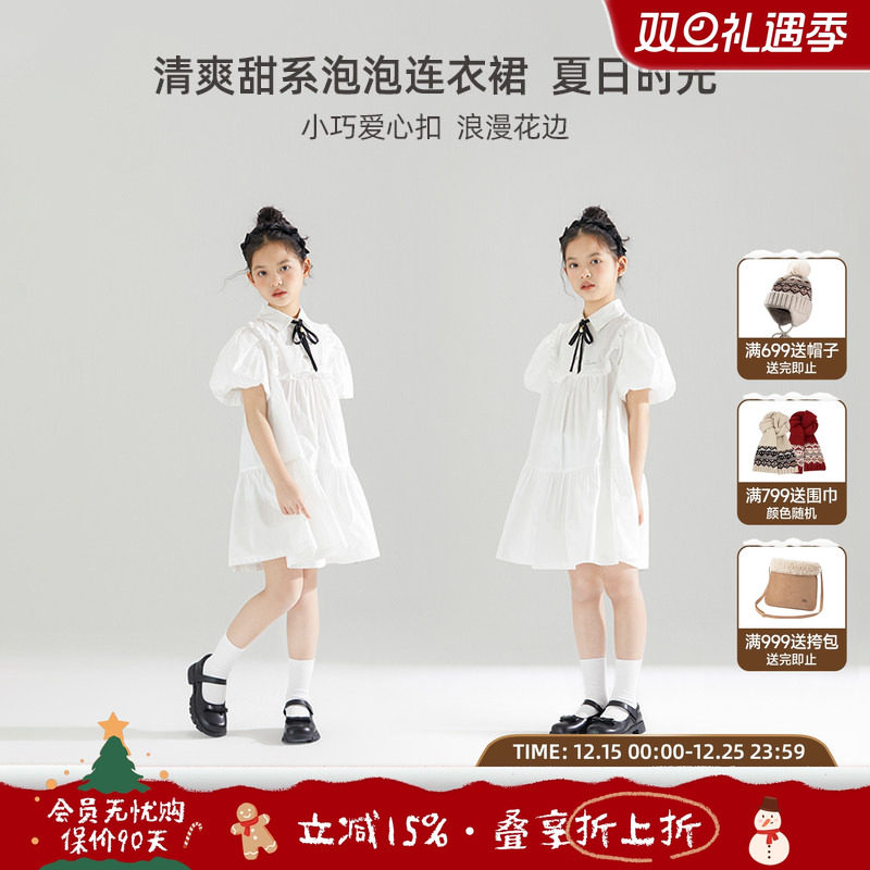 高级感女童白色连衣裙夏装女宝宝周岁生日儿童演出礼服裙子蓬蓬裙
