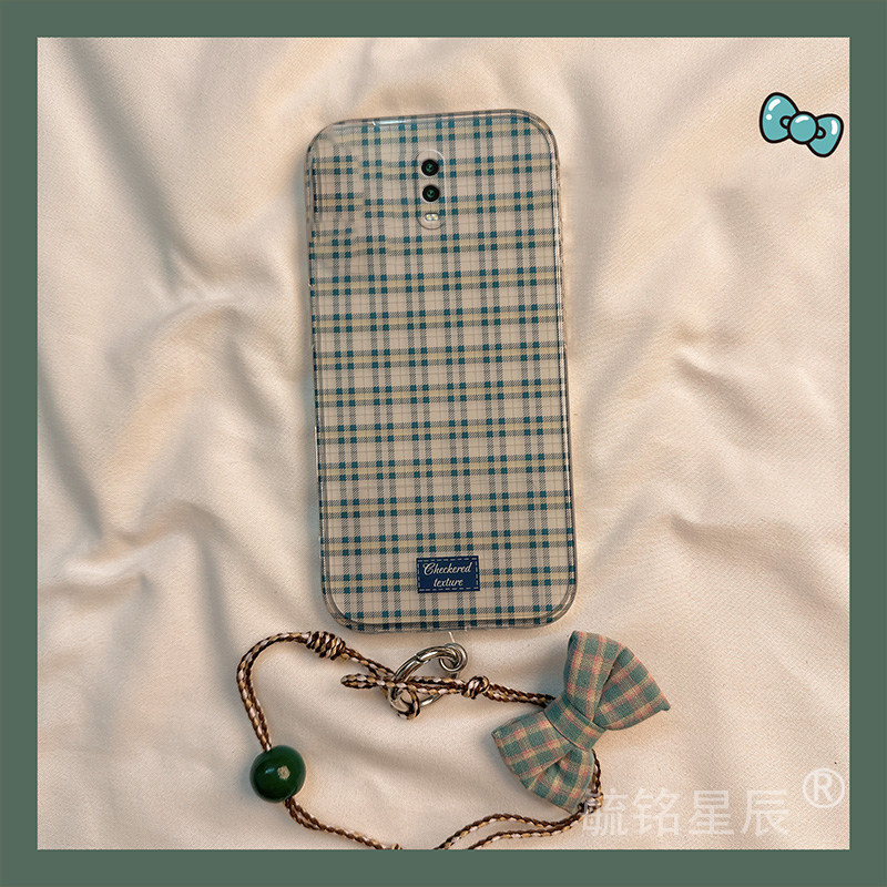 适用oppor17手机壳r15梦镜版r15x情侣r11splus格子r11t蝴蝶结r11s带挂绳的r9简约ins风r9splus防摔春天高级感