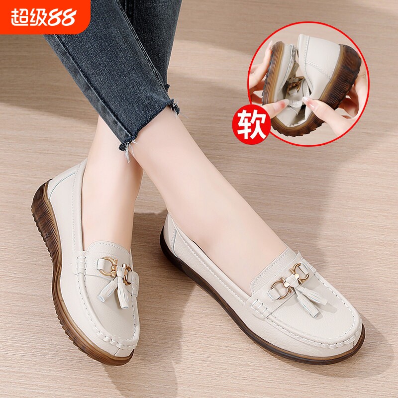 牛筋软底妈妈鞋春秋款舒适百搭平底防滑中老年女式真皮单皮鞋豆豆