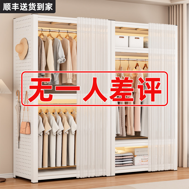 货架衣柜家用卧室出租房用简易组装金属洞洞板新款收纳钢制衣橱柜