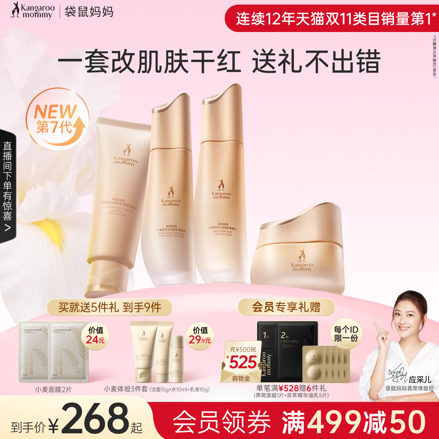 【全新升级】袋鼠妈妈小麦准孕妇水乳套装护肤品可专用精华化妆品