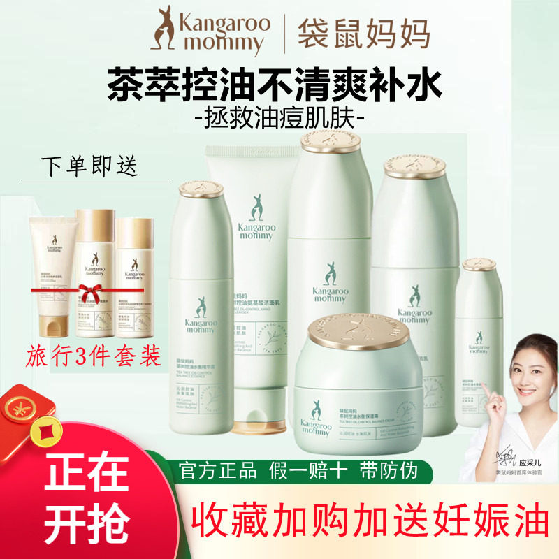 袋鼠妈妈准孕妇油痘肌护肤品茶树控油补水清爽化妆品可用水乳套装