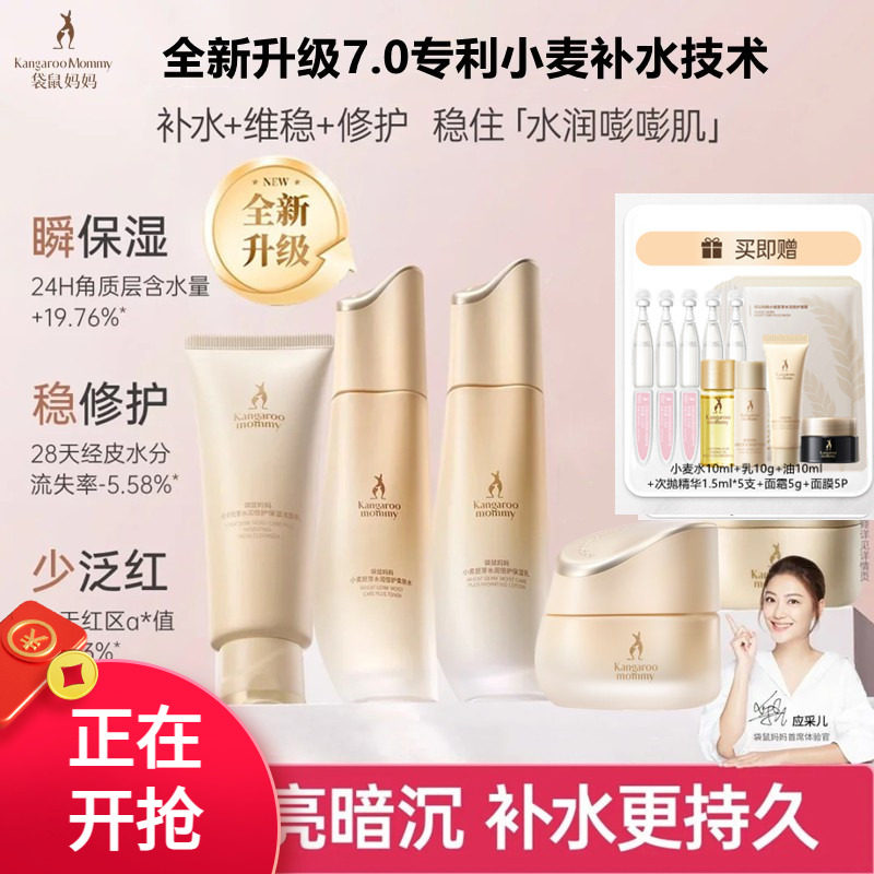袋鼠妈妈孕妇护肤品套装补水保湿怀孕哺乳期专用小麦水乳化妆品正
