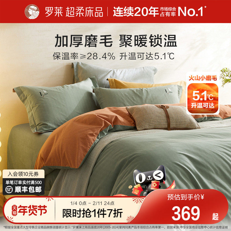 罗莱家纺床上用品套件宿舍全棉纯棉加厚磨毛床单被套双人床四件套